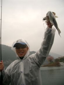 雨が次第にひどくなり出し、スロープ方面に向けて帰り際、長男坊のモグラジグにまたまたHIT