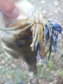 その近くにはラバジを口のそばにもっていっても逃げもせず、動かないバスもいるのです