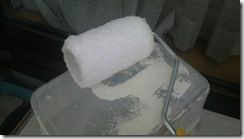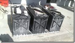 7 完成に近づきましたよ。接着が甘くなると、その部分からめくれてきますので、入念にポリテープなどで、グルグル巻きにして26kgのバッテリーで重しをしておきます。。。。4時間くらいで完成でしょう。。。