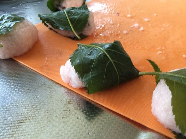 桜の葉は葉脈が外側になるよーに、包むのです^o^